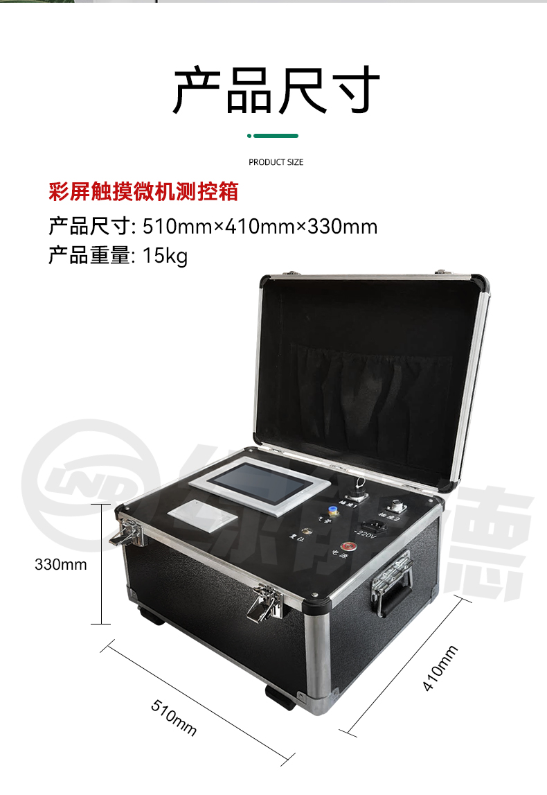 彩屏触摸微机测控箱:外型尺寸:51×41×33cm,重量15kg;